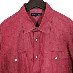 Men's Large Banana Republic Crimson Red Cotton Pearl Snap Western Rodeo Shirt