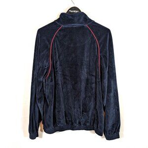 Men's Large Blue VELVET Track Jacket Full Zip Athletic Lounge Shirt Basketball