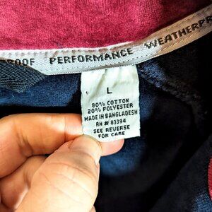 Super soft true velvet in a deep navy blue with maroon trim. Full zip with deep side pockets. Super cool! Extremely comfortable.