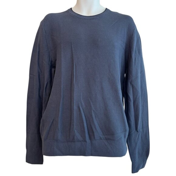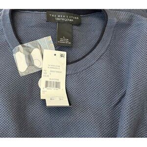 Mens Large Blue Waffle Weave Knit Shirt Long Sleeve Pullover The Mens Store NWT