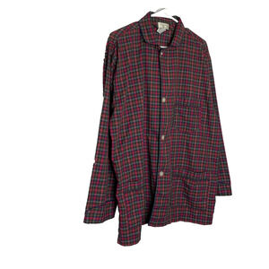Men's Large Christian Dior Cotton Blend Red Plaid Button Front Pajama Shirt