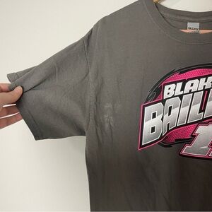 Men's Large Gray & Pink Race Car Graphic Short Sleeve T-shirt