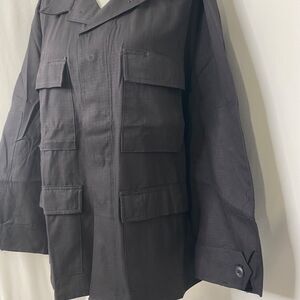 Mens Large Military Tactical Ripstop Jacket Tru-Spec Black Long Sleeve Button Down. Very clean and new condition. No major damage or stains that we saw at all. May have Some light wear from storage but still in good unused condition.