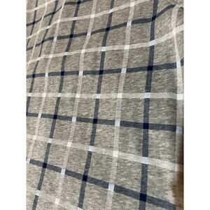 The product is a Men’s Large Nautica Long Sleeve, 1/4 Zip Pullover in a stylish grey heather color with a striped pattern. Made of a comfortable 55% cotton and 45% polyester blend, this pullover features a V-neckline and a convenient zip closure. It is machine washable and perfect for various activities such as walking, golf, and hiking, making it a versatile activewear piece for the winter, fall, and spring seasons. The Nautica logo adds a touch of modern and nautical style to this pullover, which is sure to become a staple in any man's wardrobe. The shirt comes from a smoke free but dog friendly environment.