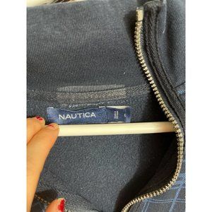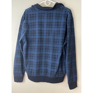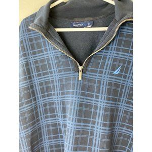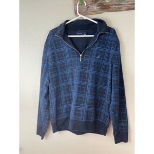 Men's Large Nautica Sweater Cotton Poly Blend 1/4 Zip Blue Plaid L/S Pullover