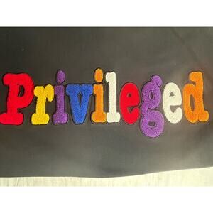 Men's Large Privileged Colorful Fuzzy Hipster Hip-Hop Longline. Discolorations noted in last photo on back of shirt.