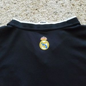Mens large Real Madrid t-shirt. Gently used and good condition. There is a little snag right below the "a" of Madrid (please look at last photo)