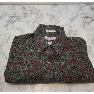 Mens Large Royalcore Paisley World of Savane Long Sleeve Shirt