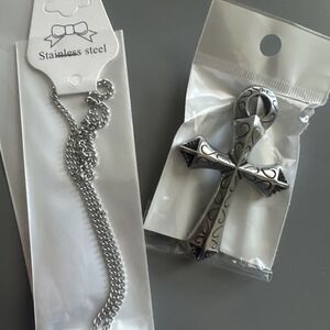Mens Large Silver Ankh Cross Symbol Of Life Stainless Steel Pendant Necklace