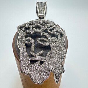 Men's Large Solid Sterling Silver 925 Jesus Head Pendant CZ gemstones 3" Length