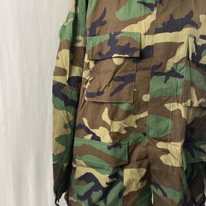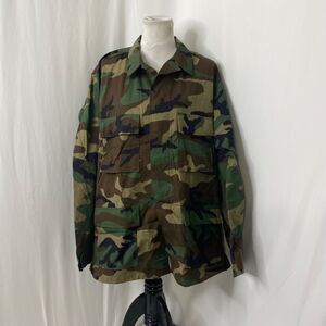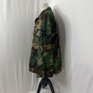 Mens Large Tactical BDU Camo Jacket Woodland Green Long Sleeve Button Down. Very clean and new condition. No major damage or stains that we saw at all. May have Some light wear from storage but still in good unused condition.