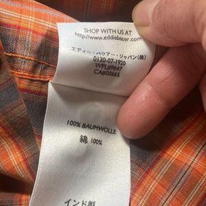 Mens Large Tall Eddie Bauer Mens Orange Plaid Long Sleeves Button Up
