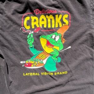 Men's Lateral Vision T-Shirt Black Cranks M Cartoon Spell-Out Anime Street Art. 100% Cotton.