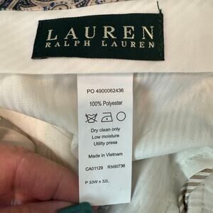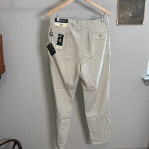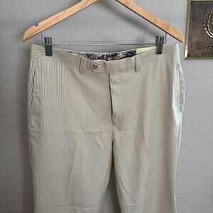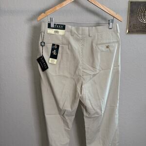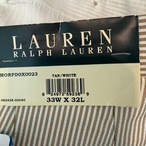 Men's Lauren Ralph Lauren Tan White Striped Seersucker Dress Pants 33 x 32 NEW