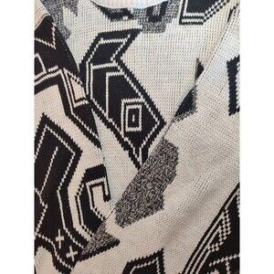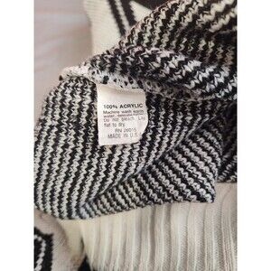 Men's 100% acrylic pullover sweater with black and white geometric pattern.