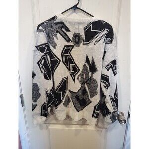 Men's Lavane New York Geometric Crewneck Sweater Black White Medium