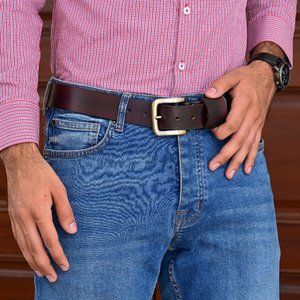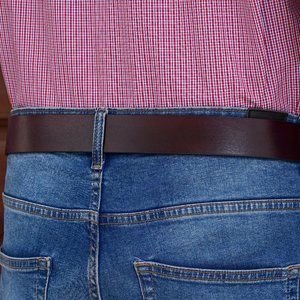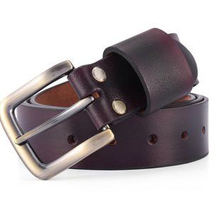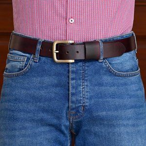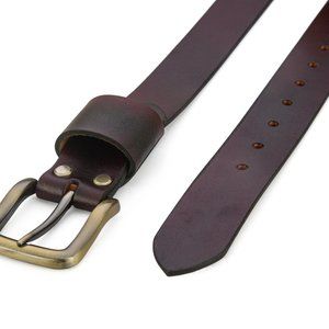 Introducing our Dark Antique Maroon Oil Waxed Leather Belt. Elevate your style with 1.5โ (38 mm) of premium full-grain leather and an antique gold buckle. Versatile with seven holes, rounded edges, and antique gold screws for that unique touch.