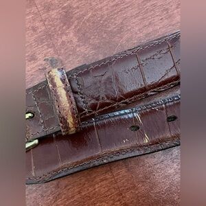 Mens Leather Belt Brown Size 50’ Top Grain Croc Print Solid Brass Hardware
