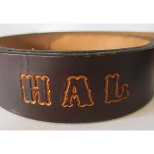 Men's Leather Belt L/XL* Personalized HAL Religious Marriage Silver Buckle Brown