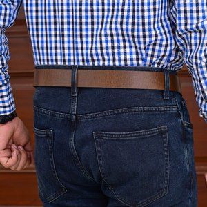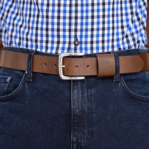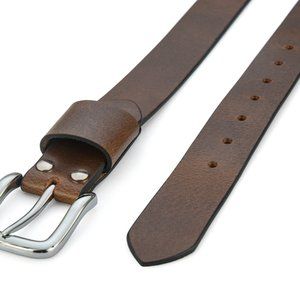 Elevate your style with the Ultimate Unisex Olive Brown Pull-up Leather Belt. This belt is crafted with 100% full-grain semi-veg leather and features a quality chrome buckle. It has seven holes for a perfect fit, rounded burnished edges, and three screws over the belt keeper. This belt is handcrafted and made with premium quality materials. It is also ethical and sustainable. The perfect gift for him or her, this belt is sure to leave a lasting impression.