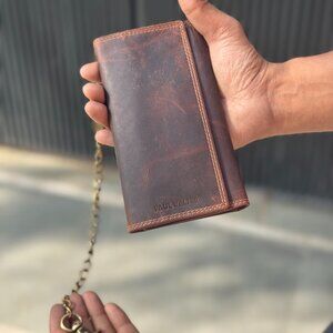 Men’s Leather Biker Chain Wallet – RFID Trifold Trucker Wallet