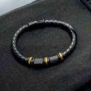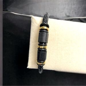 Men’s Leather Bracelet l Braided Beaded w/ Gold Accent l Magnetic Closure l New
