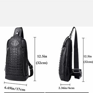 Men's Leather Crocodile Pattern Chest Bag Sling Backpack Crossbody Travel Bag