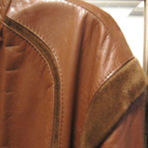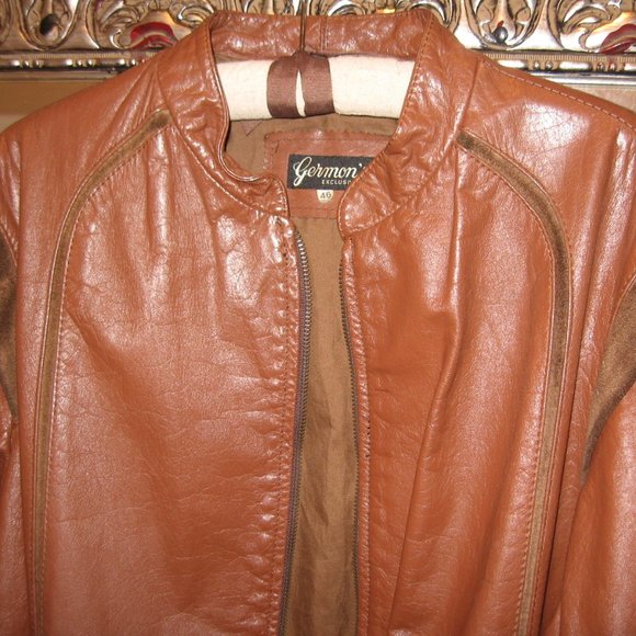 Men’s Vintage 1980s Leather Jacket (zipper head on the right side). "Bomber" jacket style. Size European 46 (like a men's small). Waist length with elastic at waist and at wrists. Priest collar. Lined. Heavy top-quality Brazilian leather. Suede inserts at shoulders and suede design down front and back. Front slit pockets with suede inserts. Additional shipping required and reflected in the price.