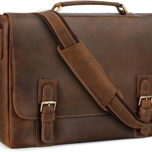 Men's Leather Satchel Briefcase, 15.6" Laptop Messenger Shoulder Bag Tote