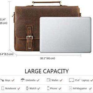 Men's Leather Business Bag: Vintage Design, Multiple Uses! A successful man usually needs a nice briefcase which can be used in office, meeting, business traveling or daily life, this is just the one! Vintage Crazy Horse leather and special twin buckle decoration freshen up this leather satchel handbag. Designed with top handles and adjustable shoulder strap, you could use it as a handbag, shoulder bag or cross-body bag.