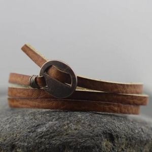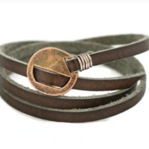 Genuine Leather wrap bracelet with zinc alloy buckle type closure. Unisex items - worn by both woman and men. Leather straps are plain - there is no writing or stamped words on the bracelet.