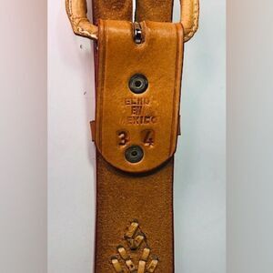 Men’s Leather tooled and woven size 34 Belt made in Mexico- New w/o tags