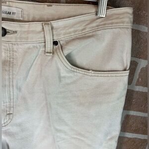 Mens Lee regular fit in size 40 waist and 30 inseam. Washed beige color, thick denim fabric.