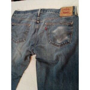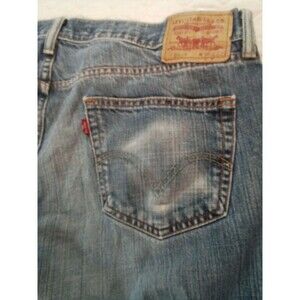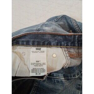The product is a pair of Men's Levi Denim Jeans in Style 559, featuring a relaxed fit and straight leg design in size 36 x 32. The jeans are made of denim fabric and come in a classic blue color. With a distressed look and Levi's branding, these jeans offer a stylish and comfortable option for men looking for a versatile and timeless wardrobe staple.