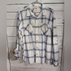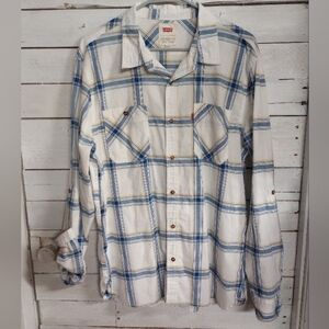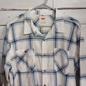 Men's Levi Strauss Button Front Plaid Shirt Size Large Roll Tab Sleeve.