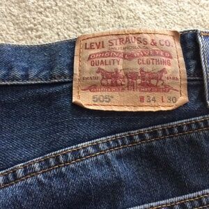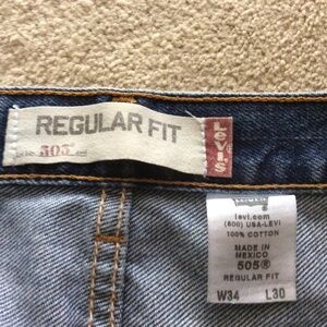 Men’s Levi Strauss & Co. 505 Regular Fit Jeans W34xL30 100% cotton Levi's 505 Regular fit unisex jeans. Technically these are in men's sizes. Preowned. Shows some signs of wear marks, scratches, scuffs, chips, discoloration, etc. See pictures.