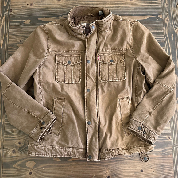 Men's Levi Strauss & Co. Tan Cotton Jacket Size L – Corduroy Collar Quilte