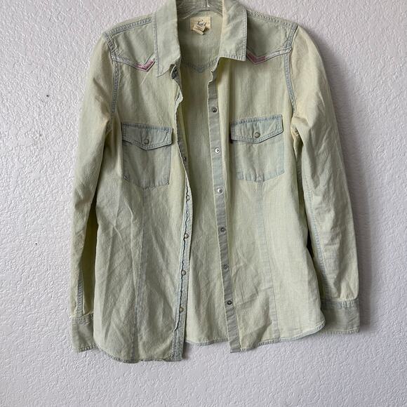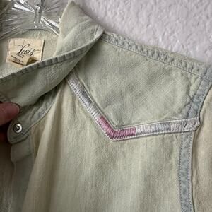Mens Levi Vintage Green Distressed Pearl Button Up Size Small