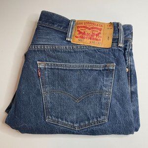 Men's Levi's 501 button fly denim jeans. Size 40x32. 100% cotton. Great condition! Measurements: 38" waist. 30" inseam. 13" rise.