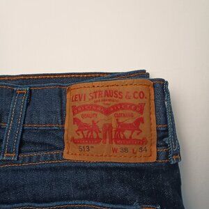 Mens Levi's 513 Slim Straight Flex Jeans Size 38x34 Dark Wash
