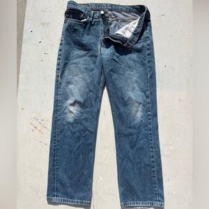 Men's Levi's 514 Premium Blue Straight Jeans 34x30 Zip DISTRESSED Modern Street