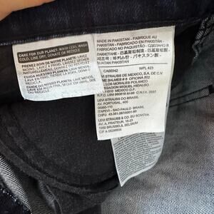 Men's Levi's 569 Loose Straight Jeans. Size 33x34 (please verify fit with measurements provided below prior to purchase.) Blue color. Dark Wash. Original color may have been altered by discoloration of the tag. Has a stain on left leg hem. Overall in good condition
