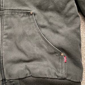 Men's Levi's Cotton Workwear Sherpa-Lined Hooded Bomber Jacket Coat Olive Large