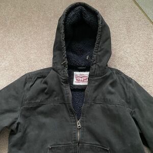 A classic, durable jacket with a cozy sherpa lining, Levi's Workwear hooded bomber jacket keeps you comfortably warm for work, chores or running errands.