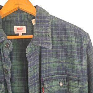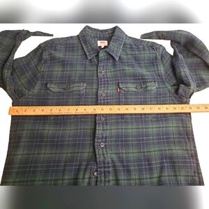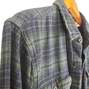 Men's Levi's Red Tag Flannel shirt. Blue Green plaid. LG