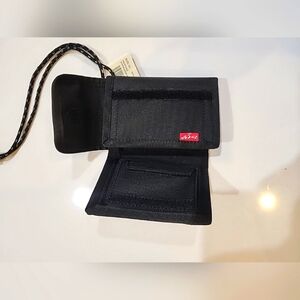 Mens Levi's Secure Tri-fold Wallet Black Tall Polyester Coin Wallets Pouch Designed with the planet in mind 100% recycled polyester ♻️ Wear multiple ways as a lanyard or attached to a bag, belt,or carabiner.