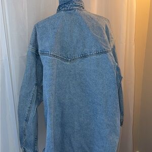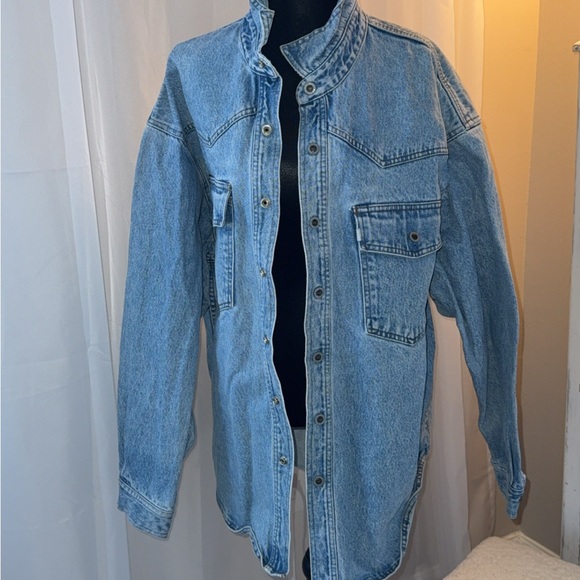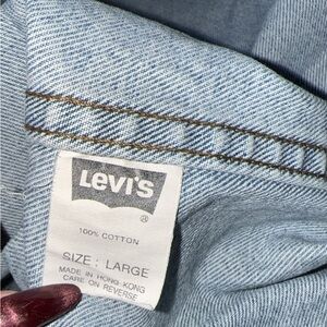 Vintage Casual Levi's denim shirt jacket. Features button-up front and chest pocket. Ideal for layering.