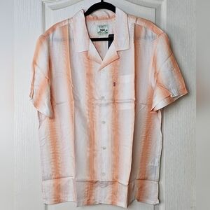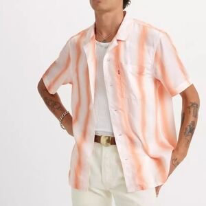 Men's Levis Sunset Camp Button Down Shirt - Orange & White LARGE