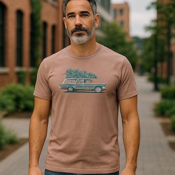 Men's Life is Good Vintage Wagon with Dogs Christmas Tee Crusher Tee