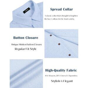 Men's Light Blue Linen Short Sleeve Button Down Casual Shirt Business Dress